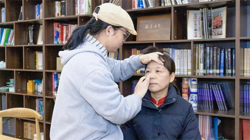 日前,在宁波财经学院的一间空教室内,睫毛膏、眼影盘和笑声齐飞——这群要给校工阿姨们“爆改妆容”的年轻人,正在打捞岁月长河里闪闪发光的女性故事。