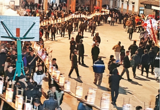 白天的抬阁巡游以静制动,展现千年非遗的厚重底蕴;而夜晚的板龙表演则以动破静,成为另一道不可或缺的亮丽风景线。只见长龙在夜空中蜿蜒盘旋,五彩斑斓的龙身在路灯的映照下更显耀眼,伴随着喧天的锣鼓声,舞者们奋力挥动手中的龙身,将满腔的喜悦与祝福倾注于这璀璨的夜色之中。人群簇拥在古色古香的传统建筑旁,手持灯笼或装饰物,欢声笑语此起彼伏,整个场景洋溢着欢乐与祥和的氛围,将元宵佳节的夜空点缀得如梦如幻。