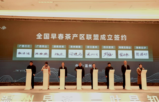为进一步深化茶产业发展,让早春茶香飘四海,会上,浙江温州、四川宜宾、广西三江、广西灵山、贵州晴隆、湖南保靖、海南五指山、海南白沙等早春茶产区代表共同宣布成立全国首个跨区域早春茶产业协作平台——全国早春茶产区联盟。