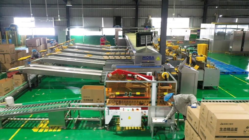 在湖北建始的一处养殖基地内,一枚枚当天产的新鲜鸡蛋通过流水线不断传输。经过分拣、杀菌、打包、装箱的鸡蛋将被发往江苏、浙江等地。