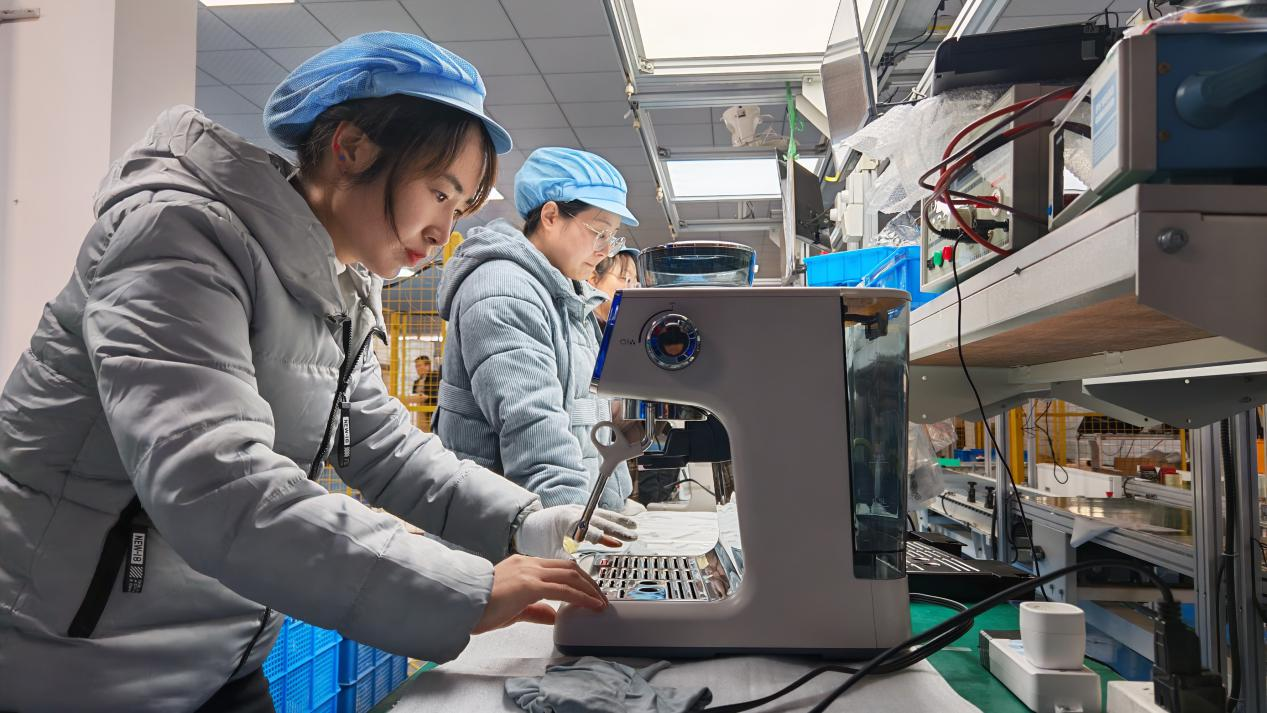 备料、组装、测试、清洁、打包……十几道工序有条不紊接续完成,一台台造型时尚的咖啡机走下流水线,等待装车出口。连日来,位于浙江宁波余姚的浙江比依电器有限公司咖啡机生产车间内,各条流水线已处于高负荷运转状态,数款新研发的咖啡机正式投产出货。