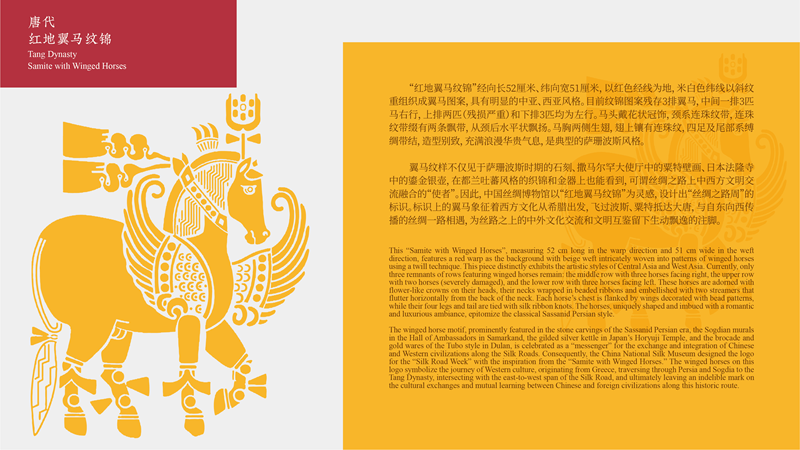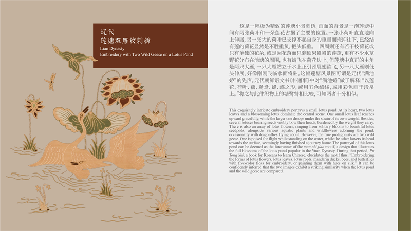据悉,2025中意时尚艺术之约的设计灵感源分别为辽代莲塘双雁纹刺绣、唐代红地翼马纹锦、南宋如意山茶暗花罗。