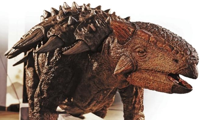 这个影棚里住着“恐龙家族”,它们有10多米高,个个栩栩如生。其巨大的体型让人害怕,我情不自禁后退了几步。