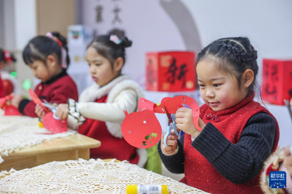 当日,浙江省湖州市长兴县李家巷镇中心幼儿园的师生们以“非遗润童心”为主题,开展新学期传统文化体验活动。孩子们在老师的指导下制作蛇年主题剪纸和灯笼、画心愿、写祝福,感受传统文化魅力。
