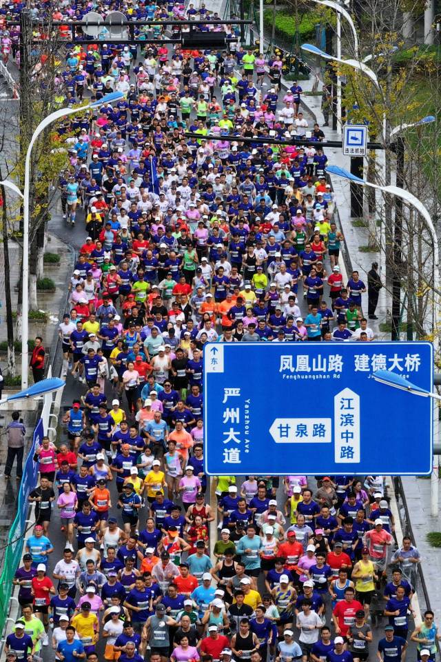 11月17日7:30,2024建德马拉松在绵绵细雨中鸣枪开跑,共有来自全国各地的1.2万名跑友从建德市博物馆出发,沿着新安绿道,途经夏日冬泳基地、紫金大桥、新安江水电站等全域旅游重要节点,分别完成全程马拉松、半程马拉松和欢乐跑三个项目的“山水之旅”。