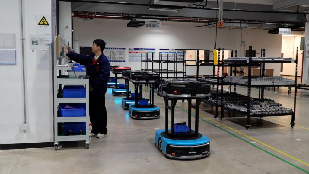 通过自主创新,牧星智能研发的物流机器人走出国门,远销全球20多个发达国家和地区。(受访者供图)