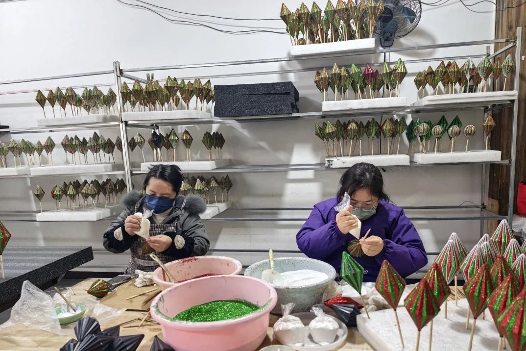 蒋松梅原是全职妈妈,2023年,在家人的支持下,办起了这家以竹木制品包装、彩绘圣诞球加工为主的来料加工式共富工坊。“我们工坊里的女工大多都是居住在周边的村民,在这里上班既能赚钱,还能兼顾家庭,我们都很开心、很满足。”工坊员工吴小君说。