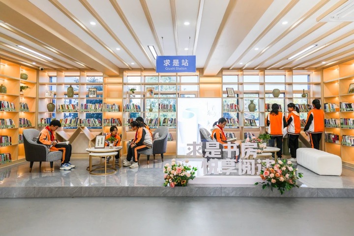 学生们在街道党群服务中心借阅书籍。