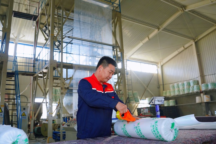 春耕备耕离不开充足的农资供应。在新疆昌吉回族自治州吉木萨尔县三台镇天露节水材料有限公司的生产车间,制膜机器高速运转,一卷卷崭新的地膜源源不断地“吐”出,工人们熟练地进行切割、封装、码放等作业。