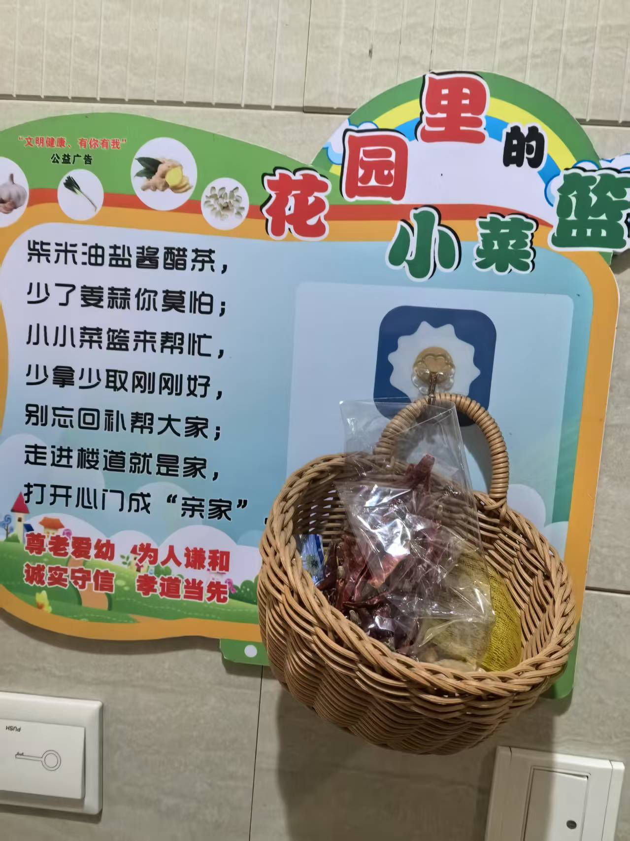 “今天有什么新鲜的菜?”“有葱和辣椒……”在浙江宁波余姚市梨洲街道白云社区姚江花园,每个楼道里挂在墙上的小菜篮串联起300余户居民的日常生活。