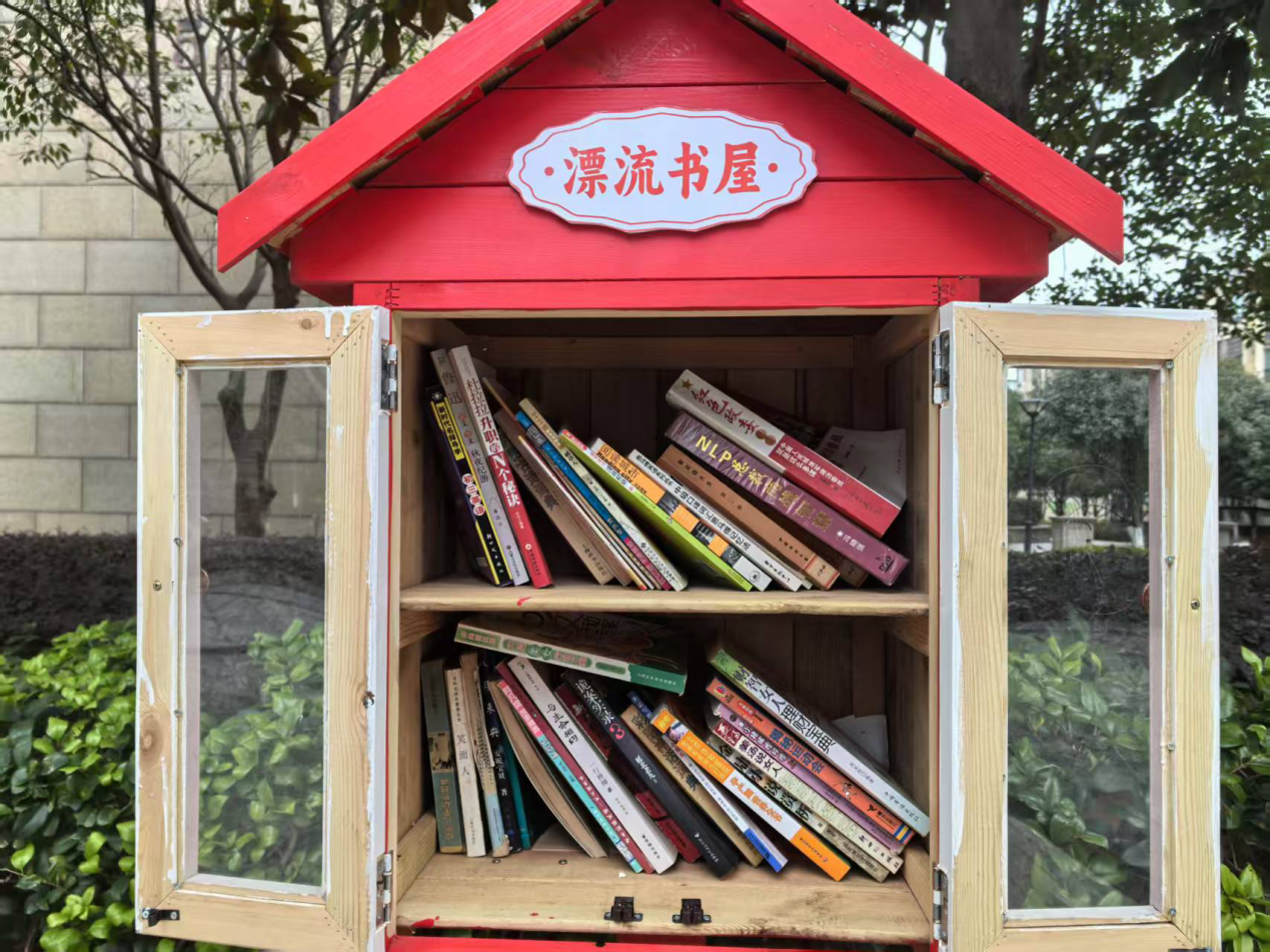 姚江花园的“漂流书屋”,供小区全体居民共享阅读。张敏 摄