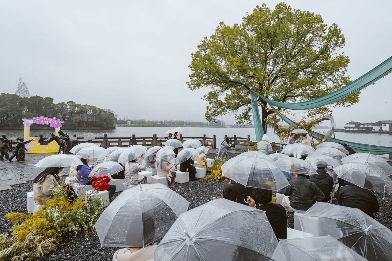 以运河风光替代奢华布置,在大树之下接受祝福,执子之手共赴甜蜜一生……3月15日下午,一场简约而温馨的婚礼在柯桥区柯岩街道叶家堰居新时代文明实践站举行。“在这里办婚礼,非必要支出少了,跟宾客们的互动多了,我们觉得更有纪念意义。”新郎陈先生表示。