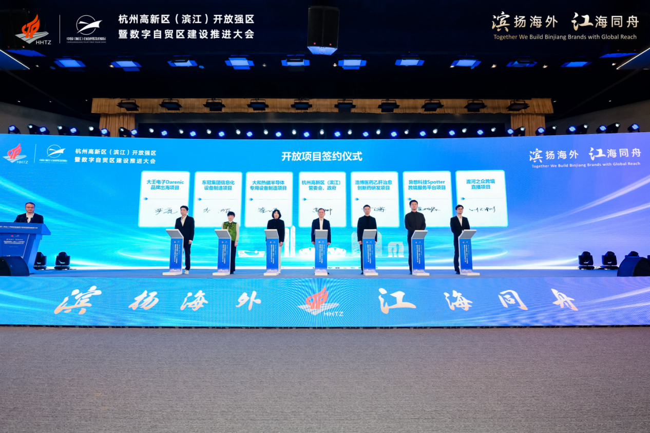 发布实施方案、启用数据跨境服务中心、启动万品出海计划……3月17日,杭州高新区(滨江)召开“滨扬海外 江海同舟”开放强区暨数字自贸区建设推进大会,以开放自信之姿立足当下、着眼未来,推出一系列创新举措,推动高水平对外开放走深走实,为加快建设高能级开放强区注入澎湃动力。