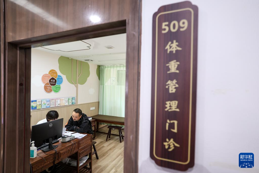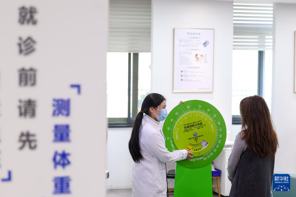 3月17日,市民(左)在杭州市拱墅区文晖街道社区卫生服务中心体重管理门诊就诊。