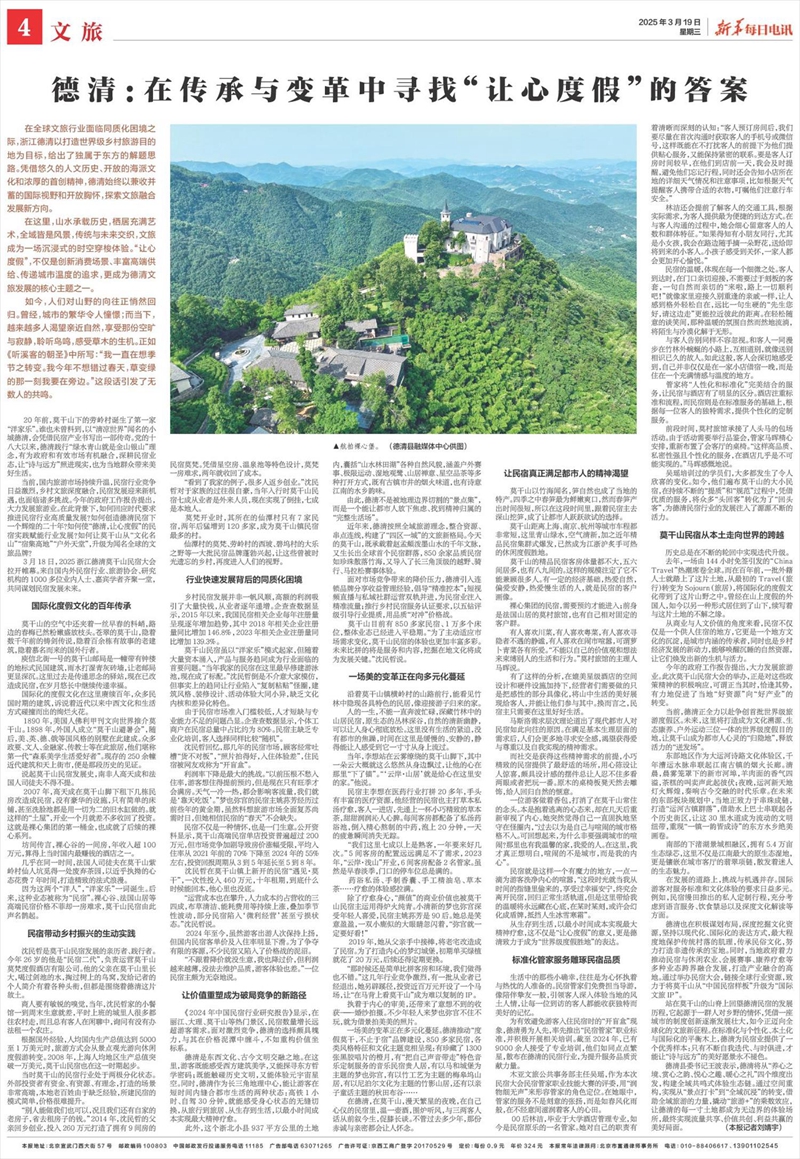 站在莫干山的山脊上回望德清民宿的发展历程,它起源于一群人对乡野的情怀,凭借一座城市的制度创新逐渐发展壮大,如今正迈向全球化的文旅新征程。在标准化与个性化、本土化与国际化的平衡木上,德清为民宿业提供了一个优秀样本:只有不断自我迭代、与时俱进,才能让“诗与远方”的美好愿景永不褪色。