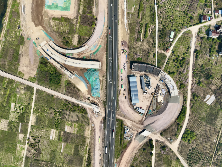在甬金高速增设金庭互通工程施工现场,桥梁护栏安装、路基边坡防护等收尾工作有序推进。这项总投资3.745亿元的省重点工程,将彻底改变嵊州东部乡镇的交通格局。