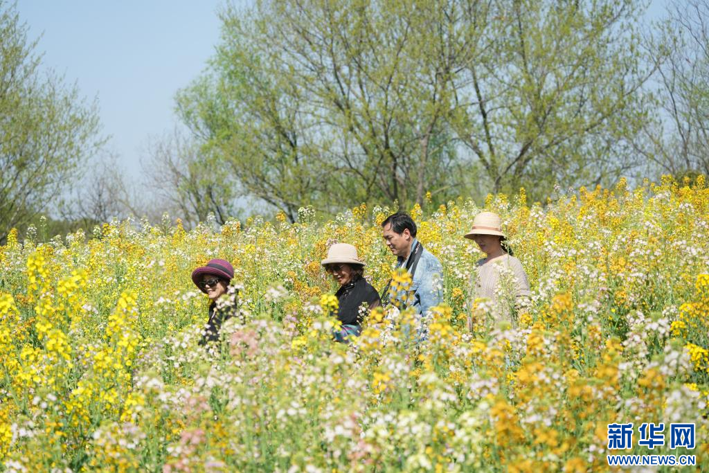 3月24日,游客在西溪湿地彩色油菜花海中徜徉。