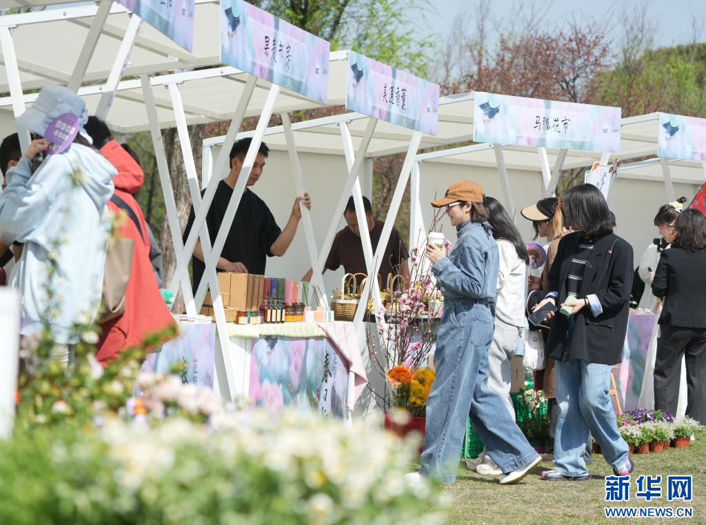 3月24日,游客在西溪湿地“花朝市集”上闲逛。