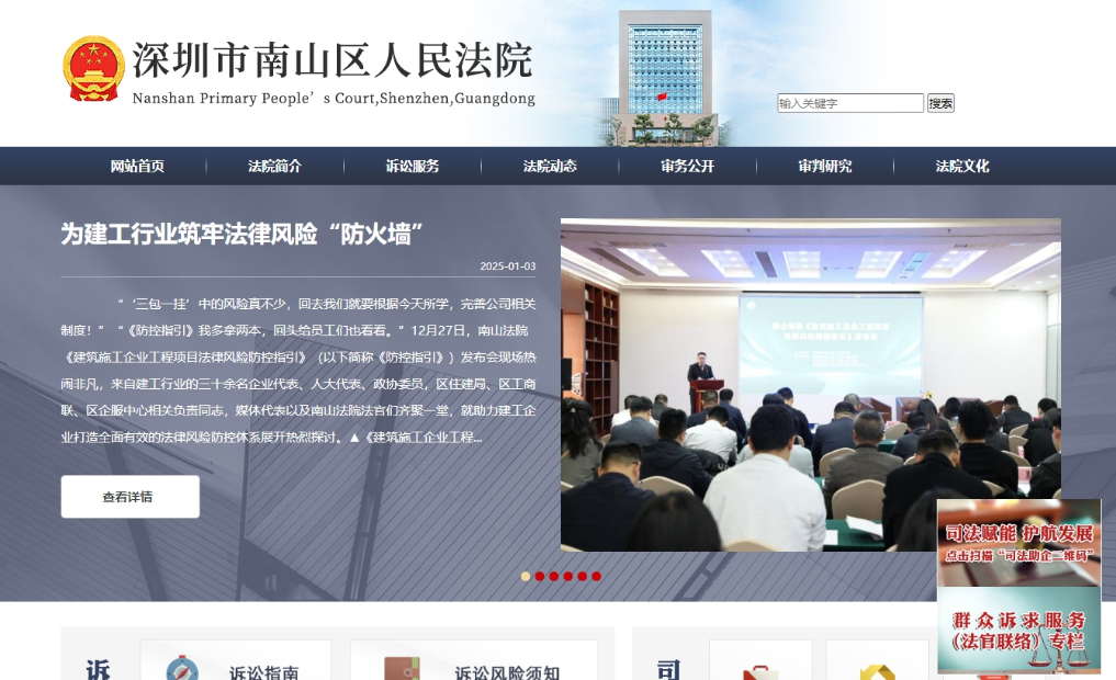 登录南山法院官网,一个“司法赋能 护航发展”浮窗引人注目,点击进去,就出现一个“司法助企二维码”。企业只需一扫,就可以线上反映多元解纷、普法需求、意见建议、信访投诉等司法需求。