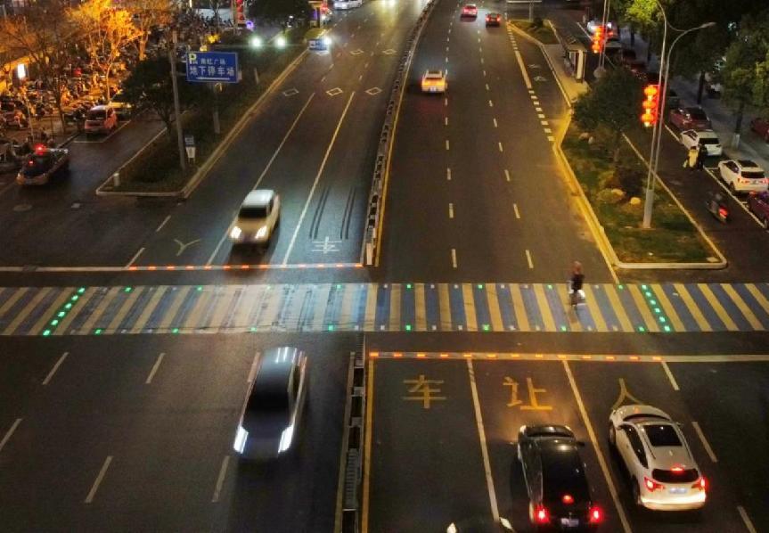 温州乐清市在交通路口打造“智慧斑马线”。黄瀚 摄