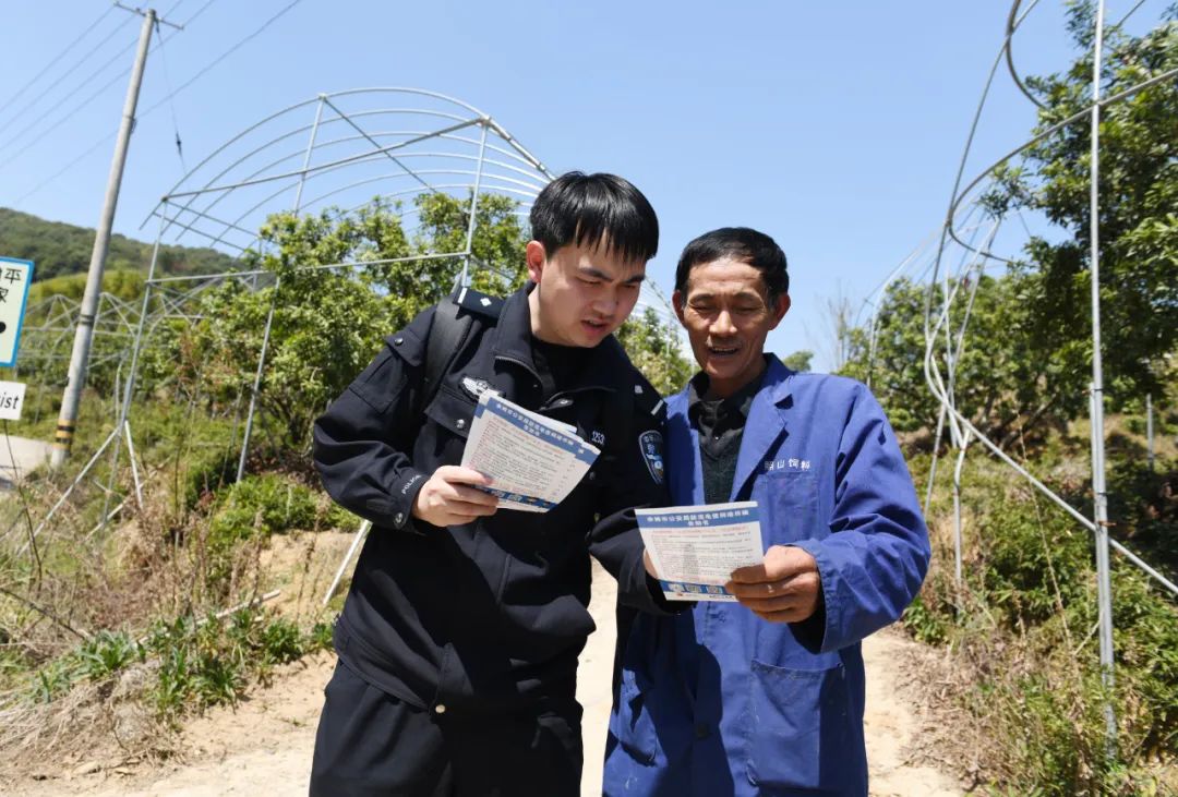 3月25日,梁弄派出所民警葛锡淡在梁弄镇横路村进行“背包警务”进村入户时为村民开展安全防范宣传。