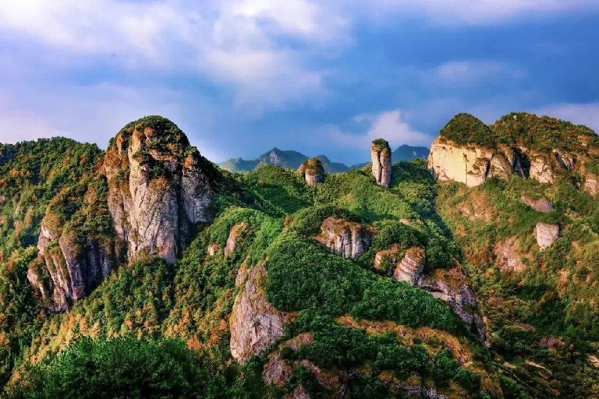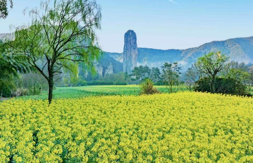 春风送信,春花送暖,春日的浙江省丽水市缙云仙都景区色彩缤纷,犹如一幅山水画舒展在这片奇峰秀水之间,装点了行人的相框。