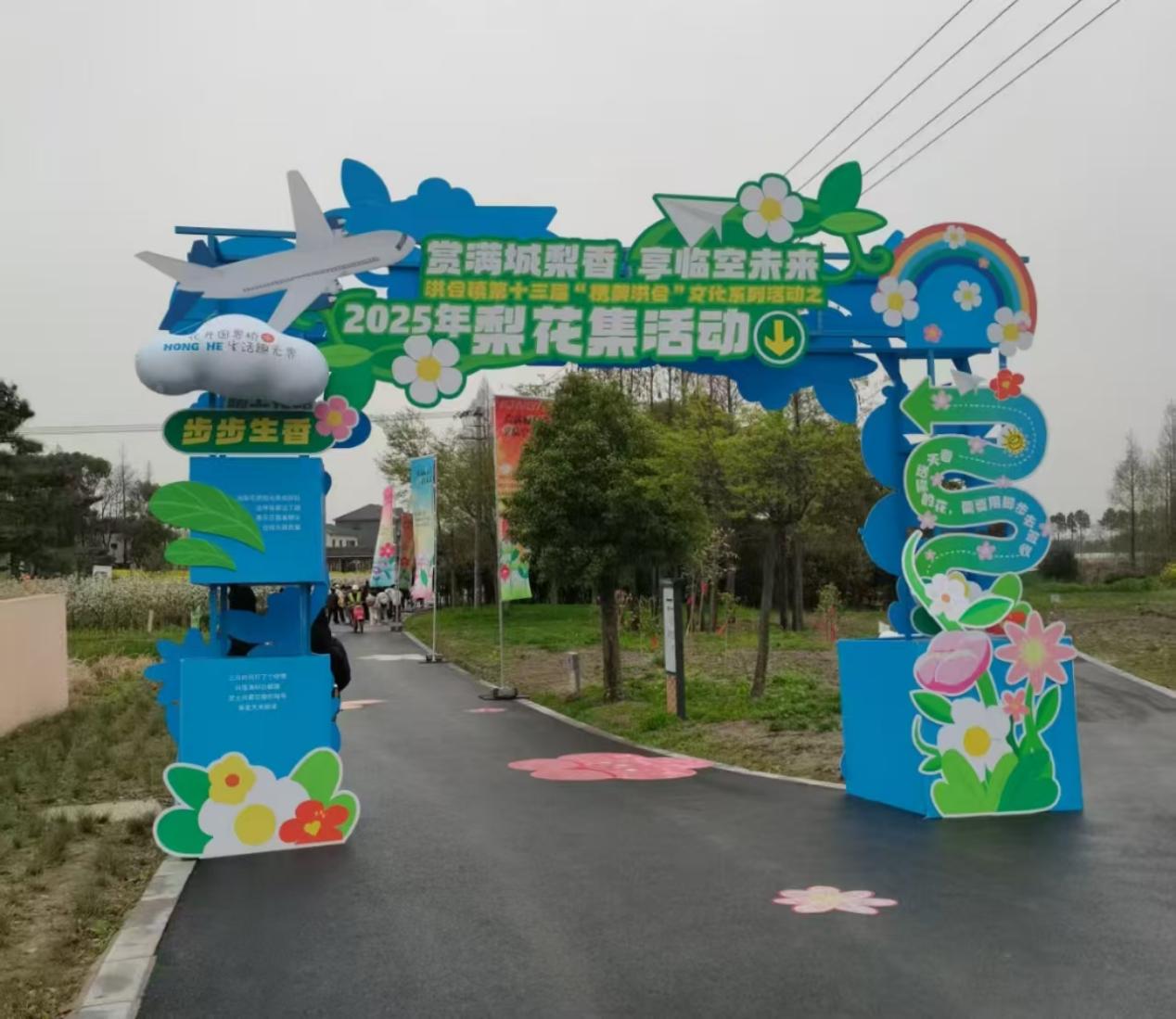 2025年梨花集,洪合镇以“赏满城梨香 享临空未来”为主题,以花为媒、以梨交友、以节招商,将围炉煮茶,毛衫文化展示,认养“梨”(理)想田地,健步走打卡活动,VR体验模拟飞行员,纸飞机大赛等活动嵌入文化集内容,融合文化、旅游、生态、科技等多重元素,展现了城乡人文底蕴与生态美学的交融共生。