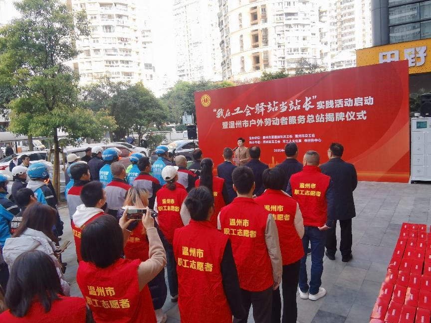 温州市“我在工会驿站当站长”实践活动以“‘驿’心向党 暖‘新’有我”为主题,通过一个党组织结对联系一个驿站、党员体验当一天站长、帮助实现一批“微心愿”、组织一场公益服务、收集一批社情民意等“五个一”活动内容,推动“小驿站”传递“大温暖”,营造全社会关心关爱户外劳动者的良好氛围。
