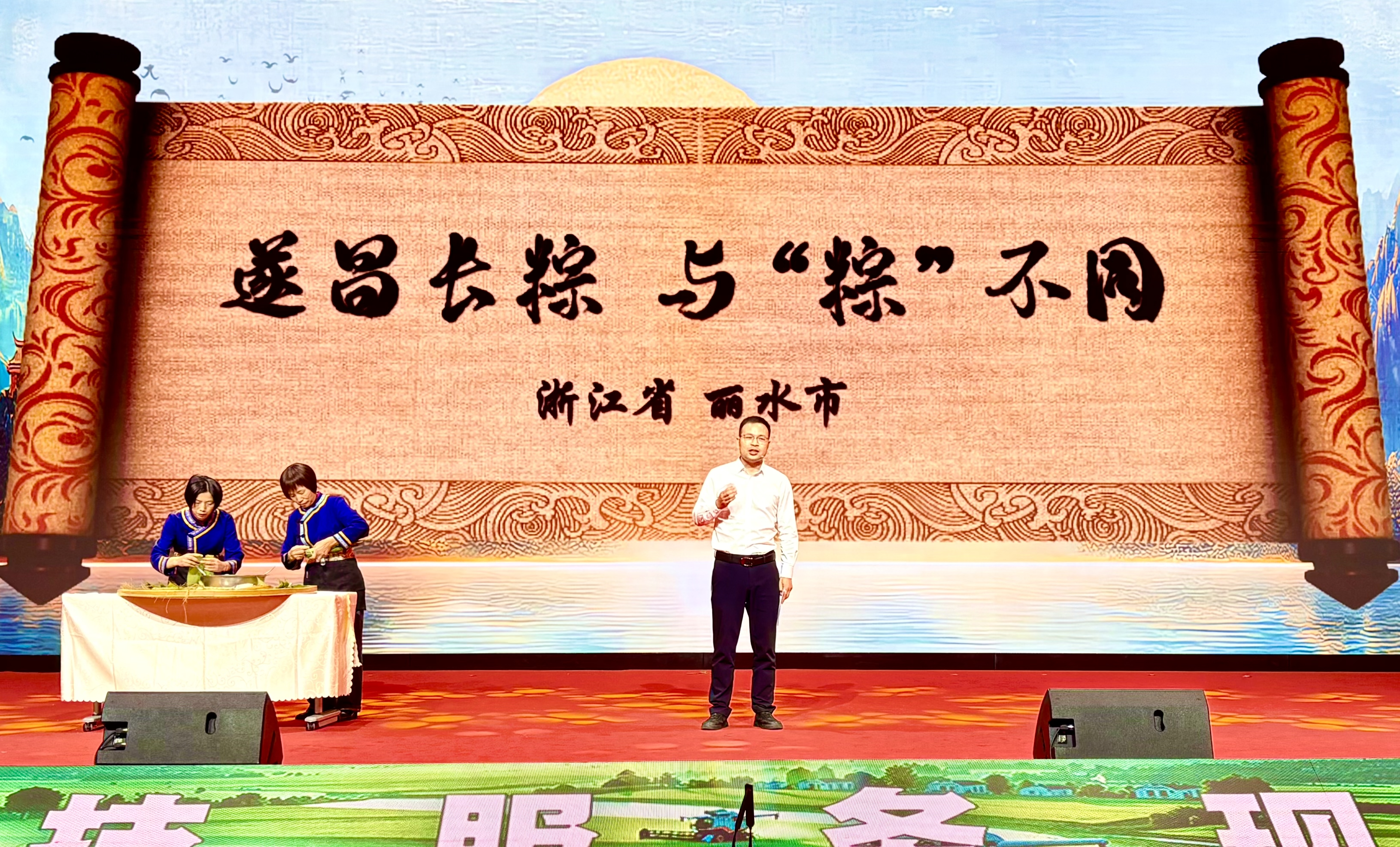 推介环节,遂昌县则围绕“遂昌长粽 与‘粽’不同”这一主题,以现场互动和网络直播的方式,从长粽原料种植基地、长粽制作技艺传承人的坚守、长粽产业助农增收致富以及农文旅产业融合发展等方面,生动形象地向现场嘉宾和全国观众介绍了遂昌长粽产业发展情况,全方位多视角展示了遂昌长粽在助推乡村振兴中的重要作用。