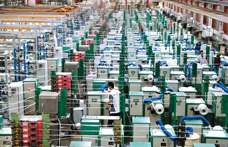 在巨石埃及玻璃纤维股份有限公司,员工在玻璃纤维生产线上工作(2023年6月26日摄) 王东震摄 / 本刊