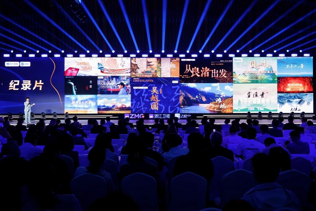 活动现场发布了2025年浙江卫视(中国蓝新平台)三个重磅片单。分别是纪录片片单,创制生产《吴越国》《从良渚出发》《走出滩坑》《营造中国》《灵隐寺》《大径山》等15部人文精品纪录片;剧集片单,发布包含长剧、短剧、定制剧等在内的系列剧集IP;综艺片单,今年浙江卫视(中国蓝新平台)将上线播出《奔跑吧13》《王牌对王牌9》《天赐的声音6》《有歌2025》《奔赴山海 钓鱼去》《支线人生》等45部综艺节目,涵盖音乐、旅行、挑战、竞演、喜剧、越剧、美食、情感、体育、AI等10多个赛道。