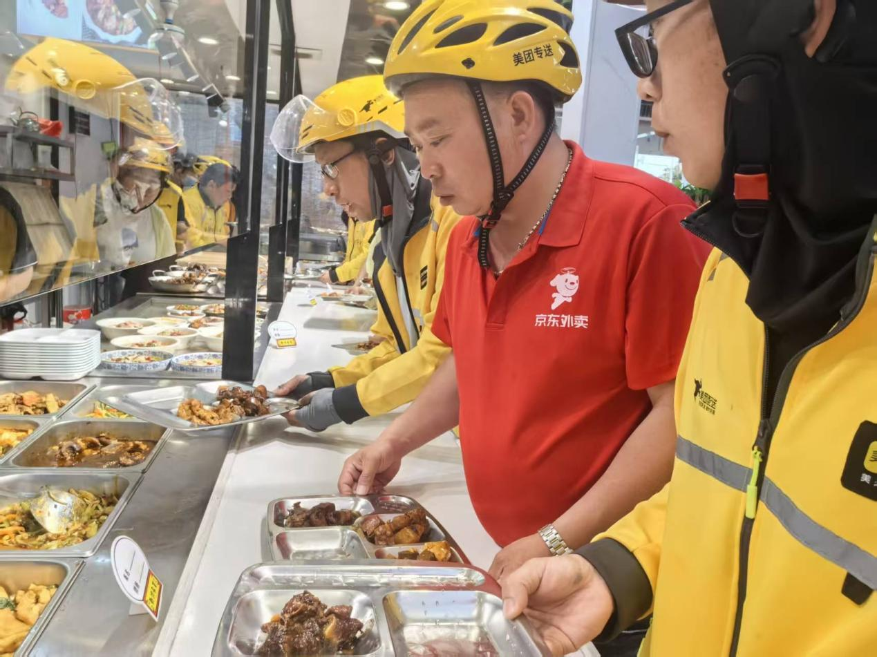 “我一个人在这里打拼,吃饭确实不方便,政府和公益组织这样关心我们,给我们解决问题,我感觉很开心,不用再回去烧饭了。”快递小哥贺大付说。