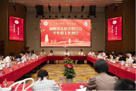 2022年度湖州市志愿者联合会半年度工作例会议在和也大健康产业园召开。湖志联常务副会长、副会长(副会长单位分管领导)和秘书长,志联会分会会长,各区县和南太湖新区志愿者联合会会长及秘书长参会。