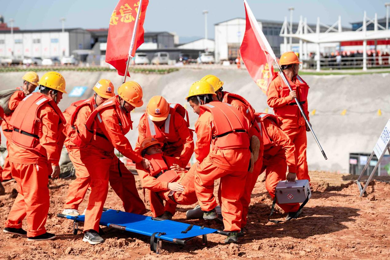 随着警报拉响,各应急小组迅速进入“战斗状态”。警戒组第一时间封锁危险区域,疏散周边人员;抢险救援组火速堆筑沙袋、加固围堰,模拟阻截洪水侵袭;后勤保障组精准调配物资,确保救援设备、医疗用品及时到位。演练全程紧张有序,各环节衔接流畅,展现出项目团队应对突发险情的快速反应与协同作战能力。