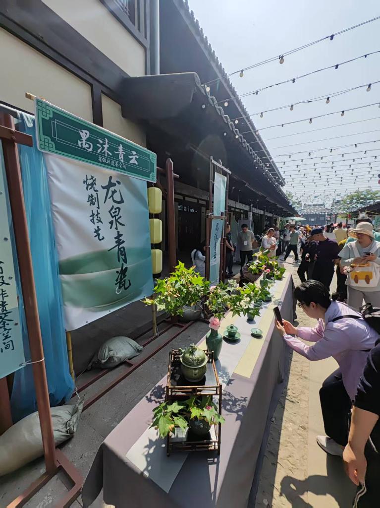 图为游客在欣赏龙泉青瓷茶具。新华社记者 冯源 摄