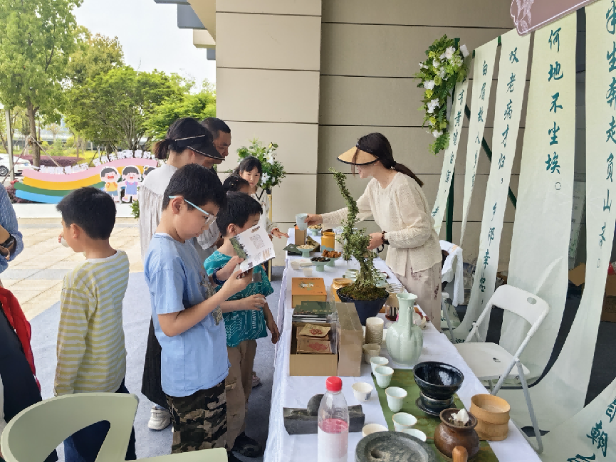 活动现场,太平钿剪纸、平阳漆器等非遗摊位一字排开,吸引了不少读者驻足欣赏。在拆字拼书名、象棋残局破解、木偶剧展示、平阳黄汤品茗等摊位前,吸引了读者沉浸式体验。黄公望、苏步青、谢侠逊等历史名人“穿梭”其间,成为“阅读领航员”,通过出题、答题等形式,与读者们互动打卡。活动采用时空穿越的创意形式,秉持“阅读+”理念,融合市集经济、名人文化与艺术体验,为广大读者精心打造了一个“行走的图书馆”。