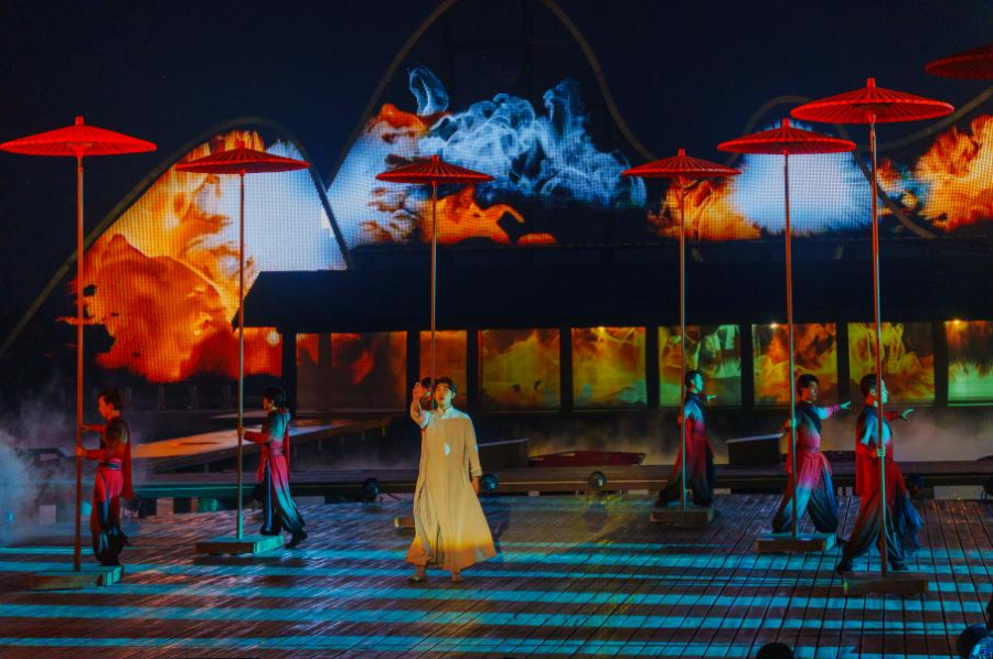 近日,由杭州《今夕共西溪》原班团队打造的《今夕东丽湖》在天津首演。这场跨越南北的文化IP联袂之作,以“科技+文艺”的创新表达,构建起杭州宋韵与天津津味文化对话的新范式,首场演出吸引逾千名游客沉浸体验。