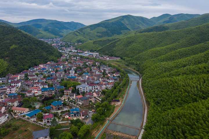 空中俯瞰浙江湖州市长兴县煤山镇新川村(2023年5月24日摄,无人机照片)。新华社记者 徐昱 摄
