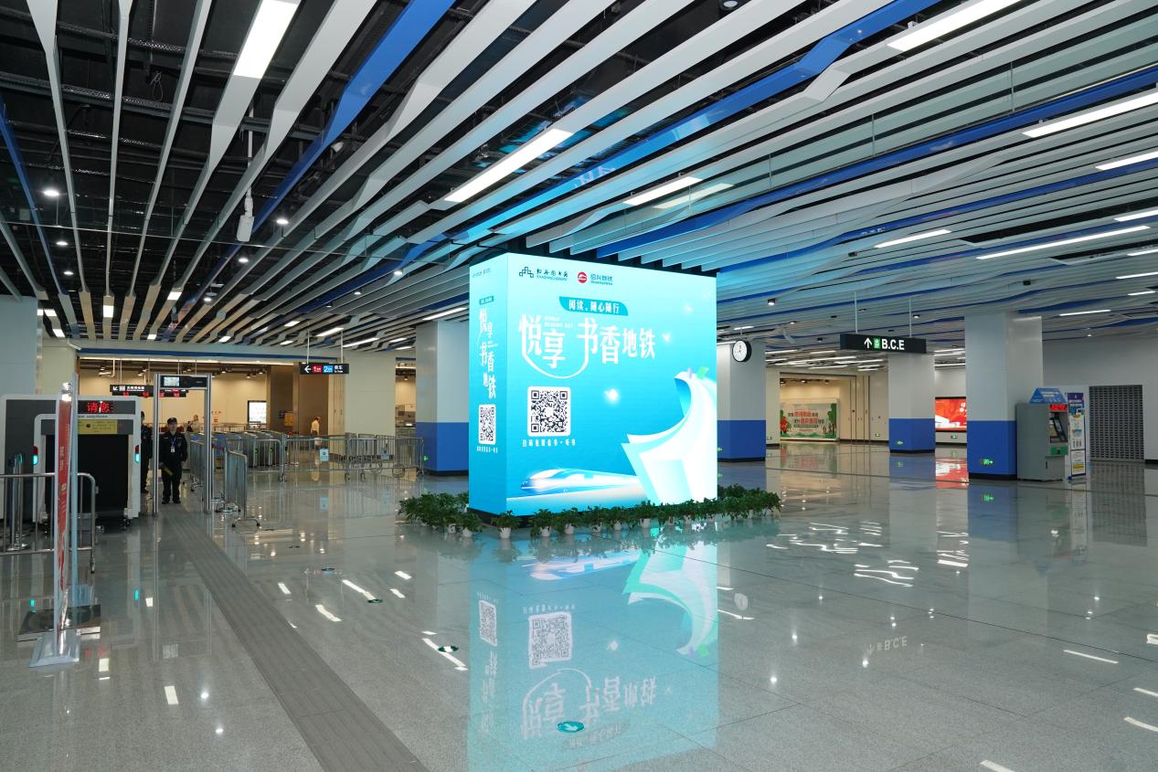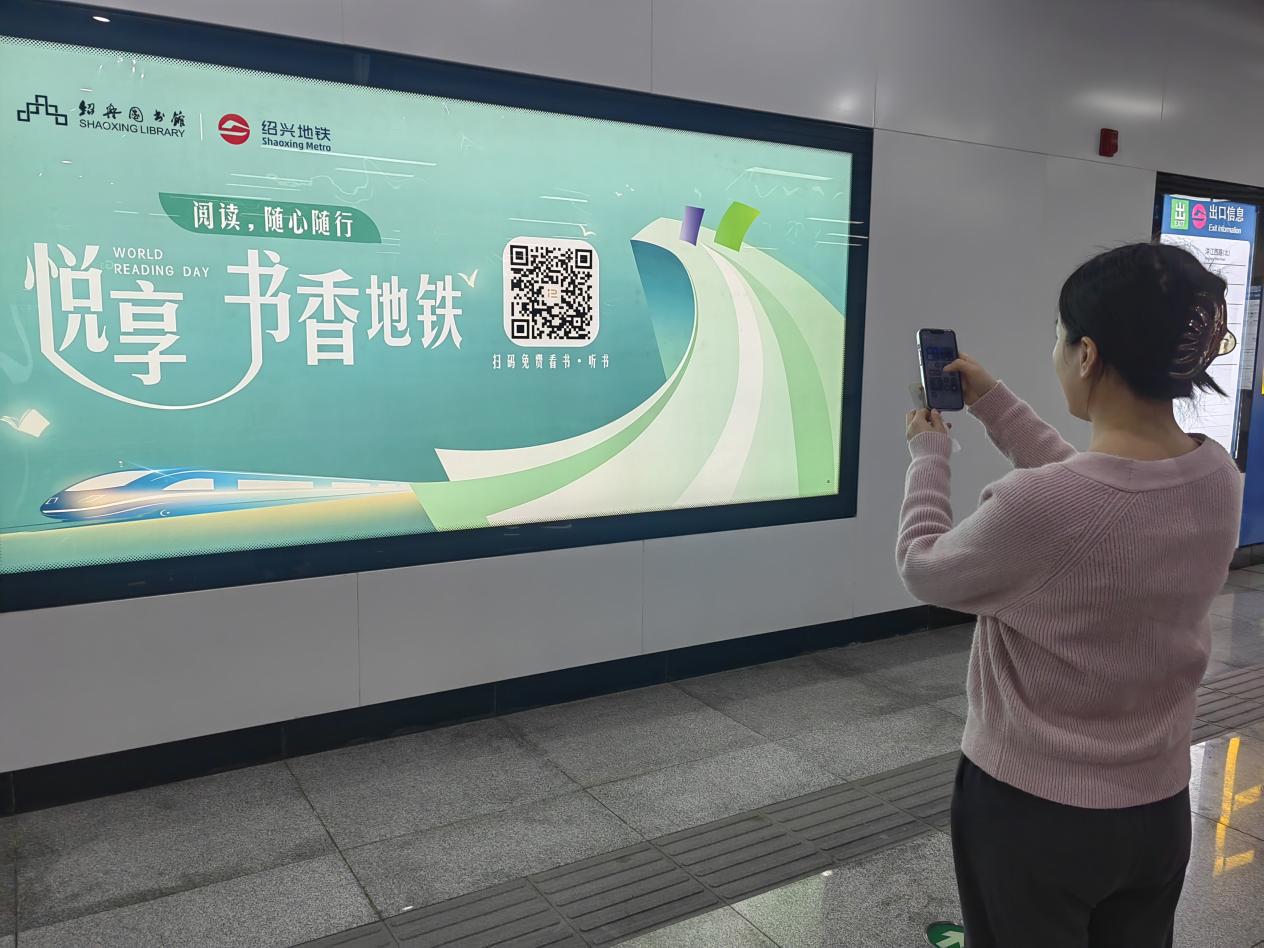 “我们通过和绍兴图书馆合作,在地铁站厅、列车车厢内多渠道展示‘数字图书馆一码通’,乘客通过扫码即可以免费进行看书、听书让地铁不仅只是一种绿色出行方式,也逐渐可以成为人文融合、城市文化的展示场所,让书香成为地铁出行中温暖的陪伴。”绍兴市轨道交通集团运营分公司相关负责人表示。