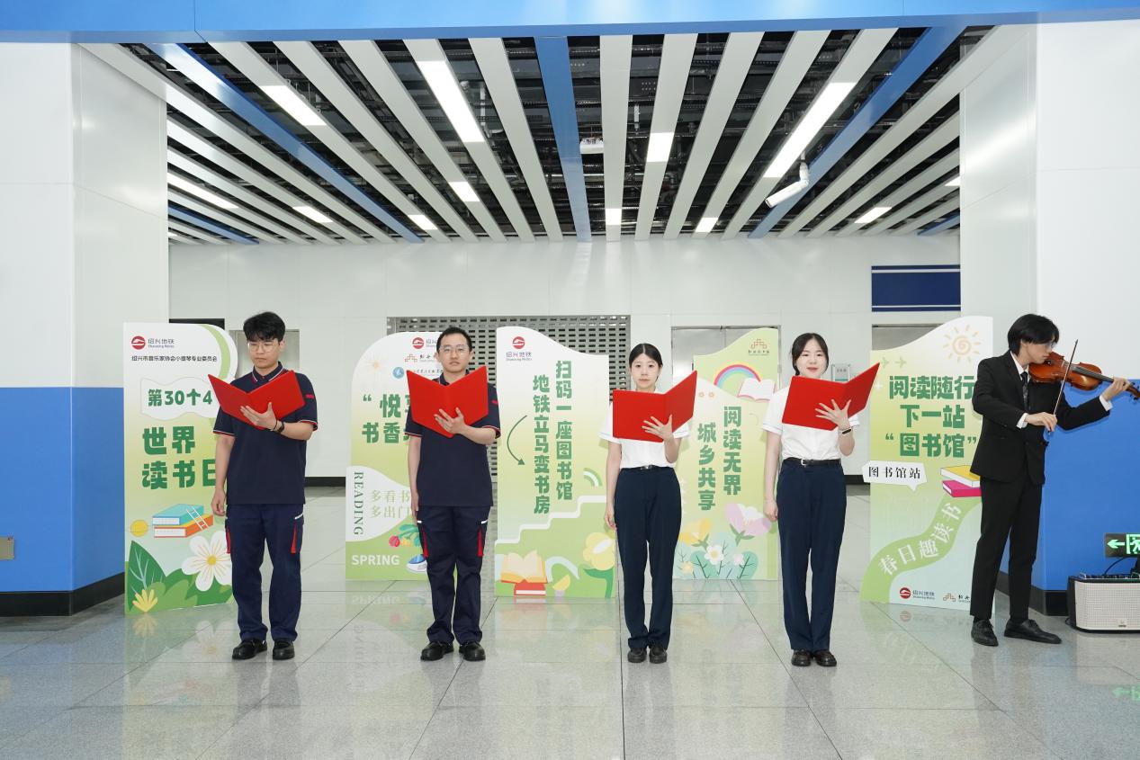 本次活动在地铁梅山广场站以快闪启幕。现场,绍兴市音乐家协会青年演奏家的小提琴独奏、浙江农业商贸职业学院汉服社的《华夏霓裳》舞蹈、地铁青年员工的经典诗篇朗诵等轮番上演,吸引众多市民驻足。绍兴地铁2号线“书香集章打卡”活动同步开启,乘客打卡集章,兑换定制文创与经典图书,为文化之旅增添趣味。