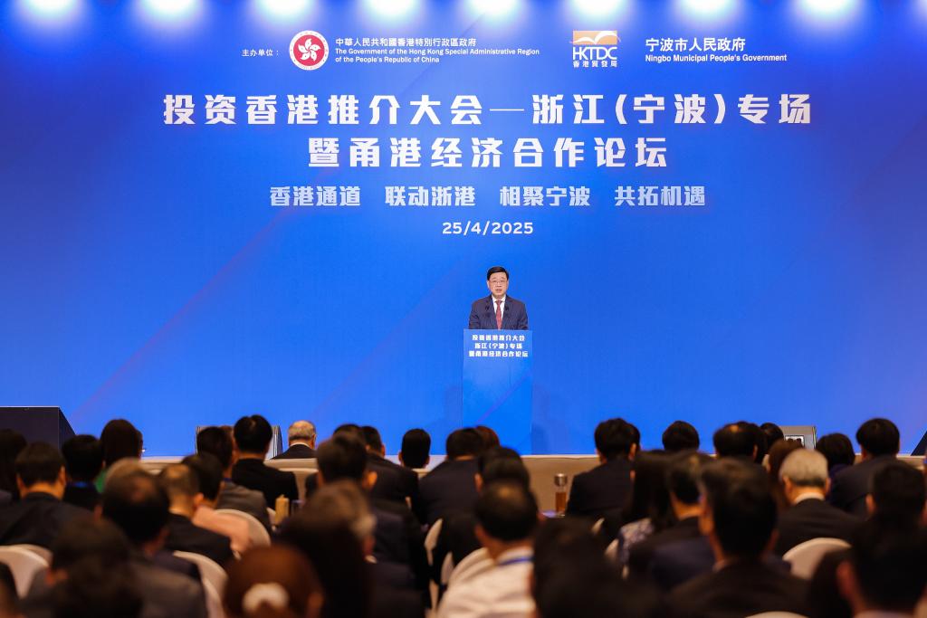 4月25日,投资香港推介大会——浙江(宁波)专场暨甬港经济合作论坛在浙江宁波举行。香港特区行政长官李家超出席活动并致辞。新华社发