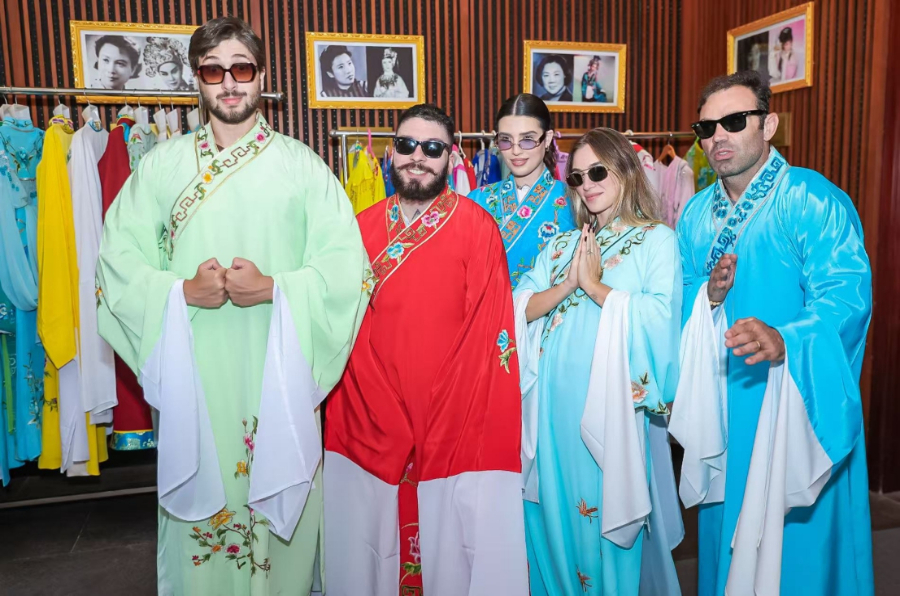 河畔旁古戏楼台上,越剧演员一开嗓,铿锵唱腔将《昭君出塞》的千年情愫娓娓道来。台下,代表们身着戏服,一板一眼地学起越剧中的经典身段。“指尖要含住情意,转身时眼随心动。”