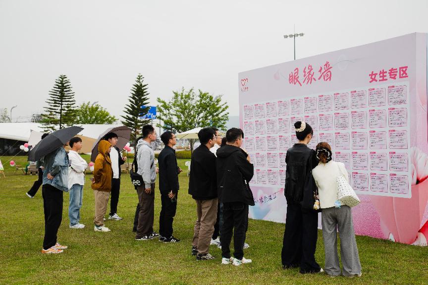 现场设置的缘分展示墙吸引众多青年职工驻足浏览。