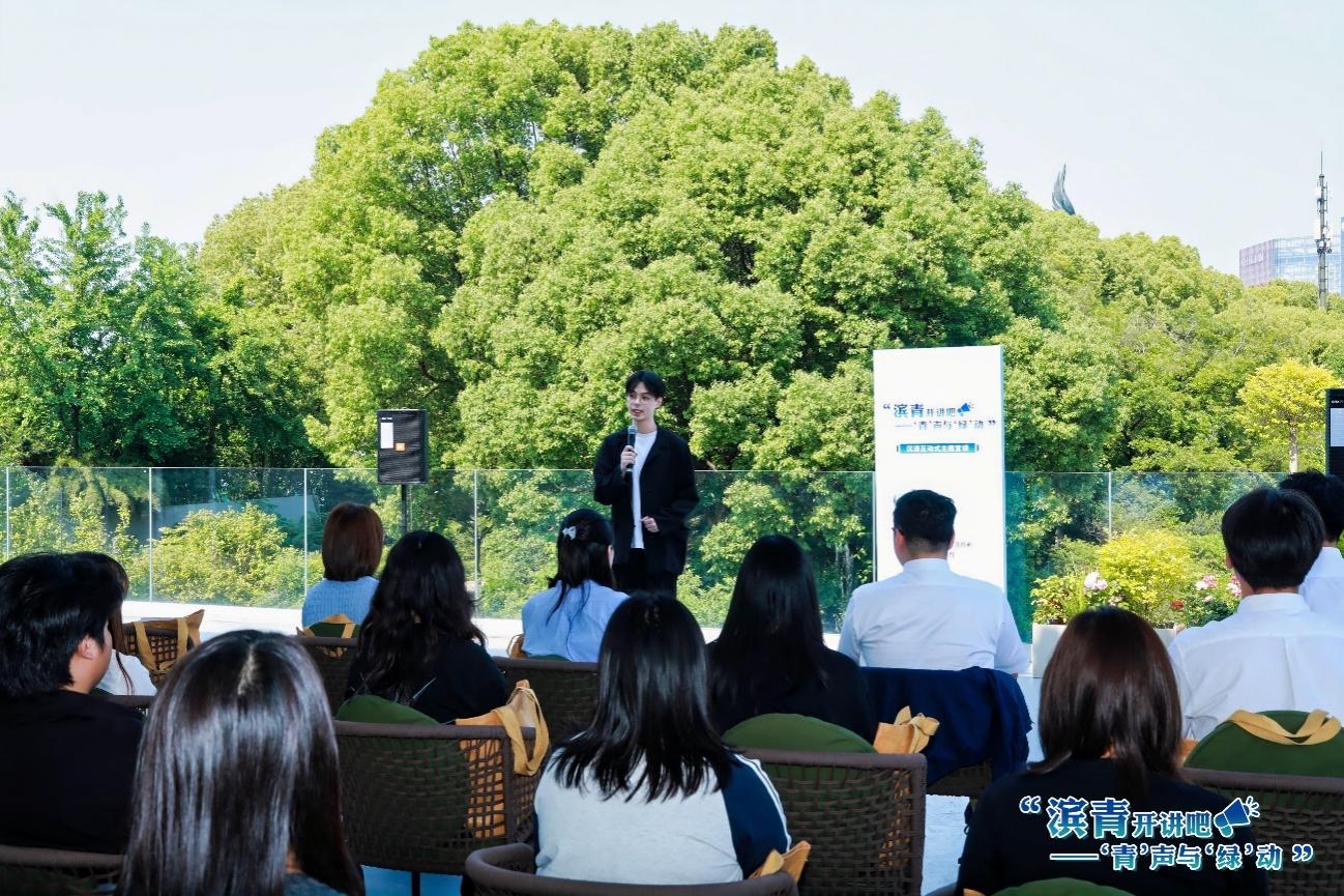 “滨青开讲吧”宣讲员赵文浩率先登场,以杭州亚运会为切口,讲述杭州高新区(滨江)如何在大型赛事中展现生态智慧。紧接着,人工智能产业园的李展鹏揭开楼宇节能的“神秘面纱”,带大家认识到办公楼里的绿色“黑科技”。而大华幼儿园教师施雯则温情出场,讲述如何通过绘本和课堂,把绿色种子种进孩子的心田。