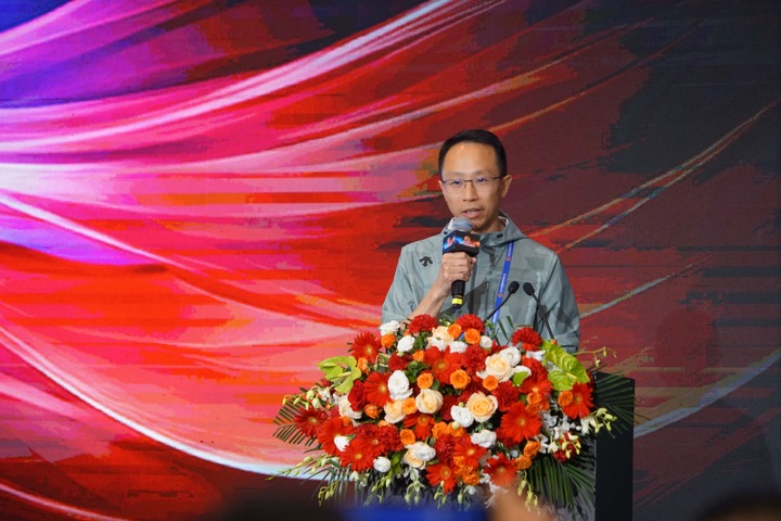 红果短视频总编辑乐力做《短剧的精品化进阶》主题交流。新华社记者 刘澈 摄