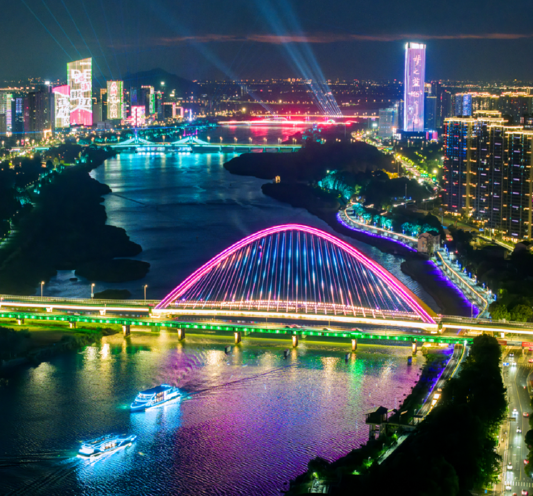 绍兴诚邀广大游客用“漫游娥江”开启全新“夜上虞”之旅,作为绍兴市首个城市主航道水上观光游项目,游船将穿越彩虹桥、人民大桥、舜江大桥等,往返约12公里,用时1小时,是江上吹风、亲水、观景的好选择。