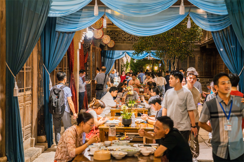 “风味小吃”则充满江南水乡的烟火气息。长街宋宴重现千年饮食风尚,小酒馆成为文艺青年的“深夜食堂”。景区内23家特色住宿,涵盖明星同款酒店、设计师酒店与枕水民宿,无论是高端度假需求,还是沉浸式旅居体验,都能得到满足,呈现出供需两旺的良好态势。