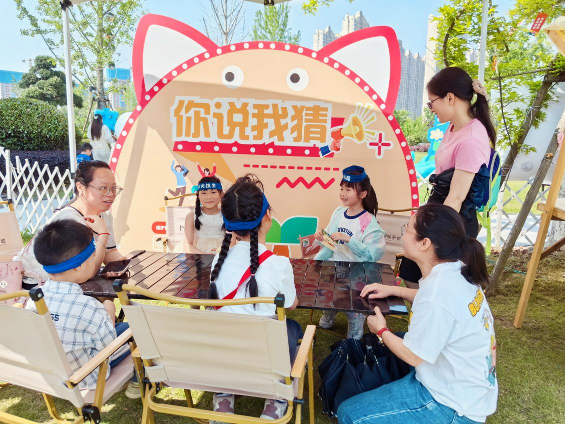 秉持寓教于乐理念,主办方还策划了你说我猜、接力画画、风筝涂鸦、主题灯谜等亲子竞赛项目,推动“护苗”工作有趣又有“料”,走“新”更入心。你说我猜游戏中,三人分为一组,每人各得到一条带有词语的发带,最先猜到自己词语的人为自己的队伍积一分;接力画画环节,六人分为一组并排成一排,前五个人得到提示卡上信息后依次接力画画,最后一个人如果猜对,全员便能得分;风筝涂鸦环节更是充分激发了孩子们的创造力,在家长的帮助下,小朋友们围绕“健康社会文化环境”主题发挥想象一点一点为空白风筝上色,他们有的则大胆尝试不同的色彩搭配,有的画出各种图案让画面更加丰富多彩,每个小朋友都全神贯注地投入到自己的艺术世界中,制作出一个个五彩斑斓又独特的风筝。