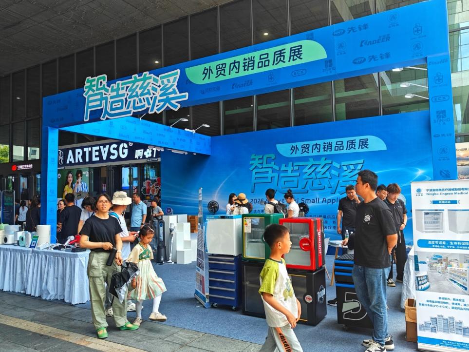 5月3日,“智造慈溪”家电产品展销活动在浙江宁波文化广场举行,慈溪市的先锋电器、三禾厨具等十余家知名家电企业携近百款畅销全球的小家电分享给市民朋友,为“五一”假期增添了一项特色消费场景。