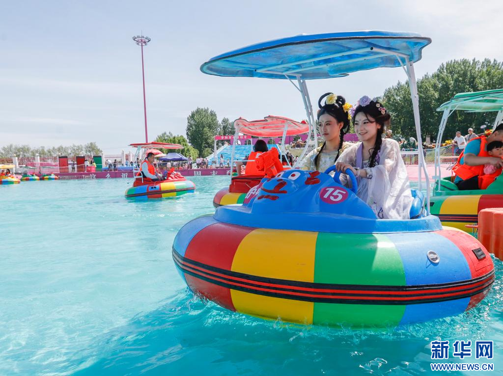 5月4日,身着汉服的游客在河北省遵化市一处水上乐园游玩。新华社发 刘满仓 摄